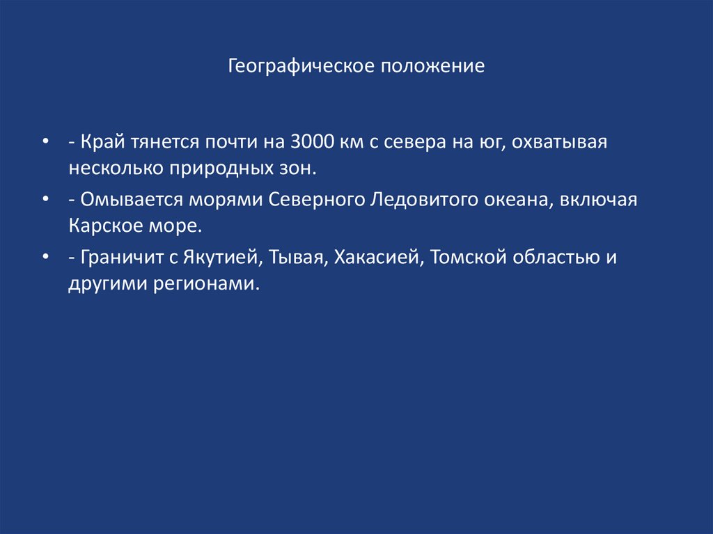 Географическое положение• - Край тянется почти на 3000 км с севера на юг, охватывая