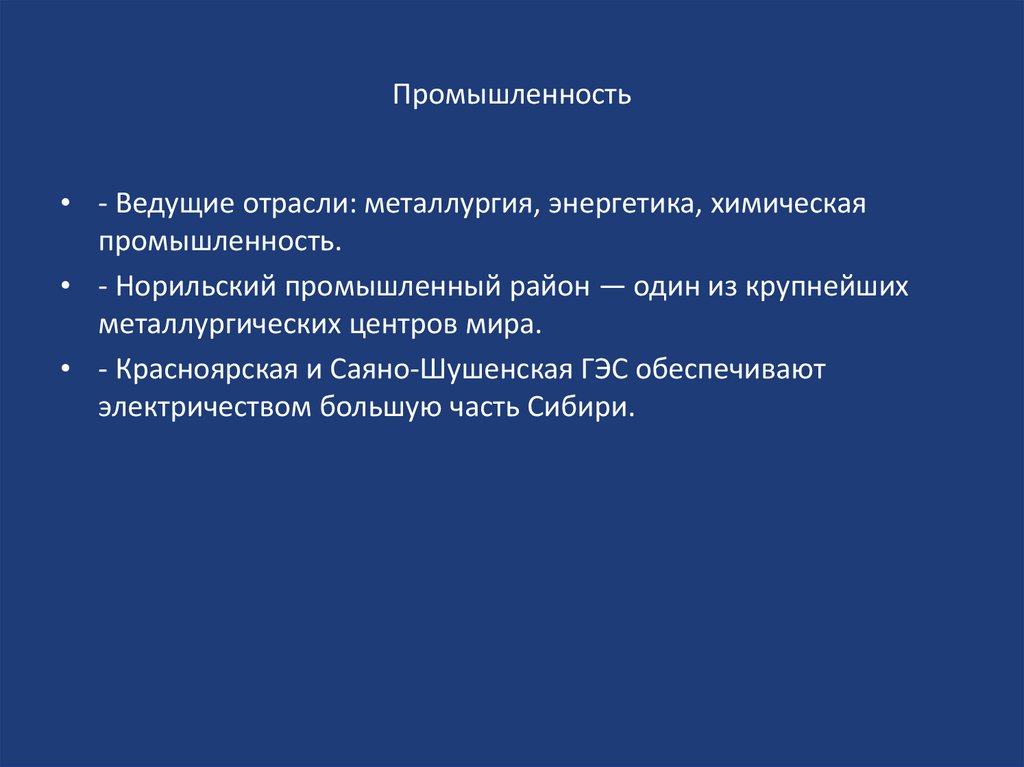 Промышленность• - Ведущие отрасли: металлургия, энергетика, химическая
