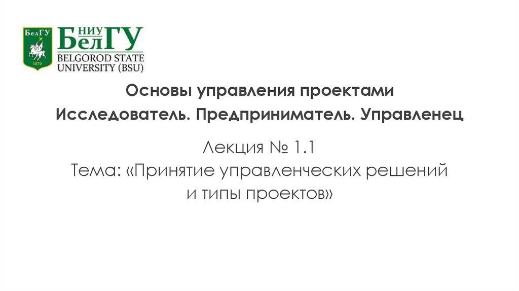 Основы управления проектамиИсследователь. Предприниматель. Управленец