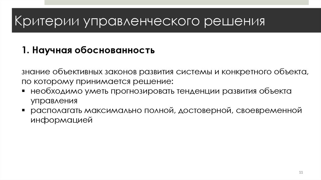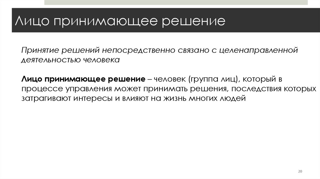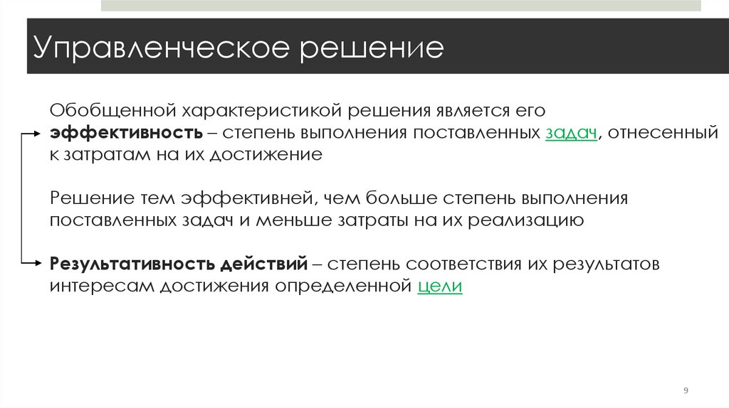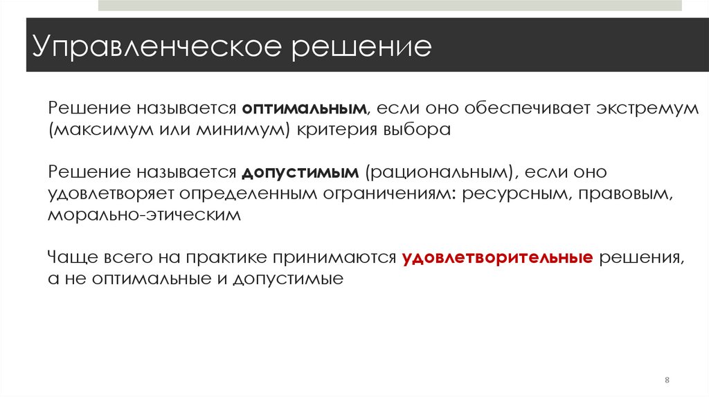 Управленческое решениеРешение называется оптимальным, если оно обеспечивает экстремум