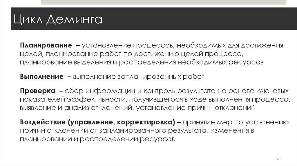 Цикл ДемингаПланирование – установление процессов, необходимых для достижения