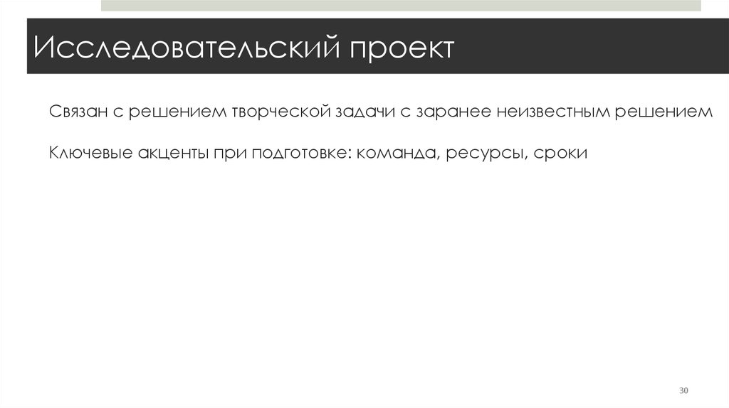 Исследовательский проектСвязан с решением творческой задачи с заранее неизвестным решением