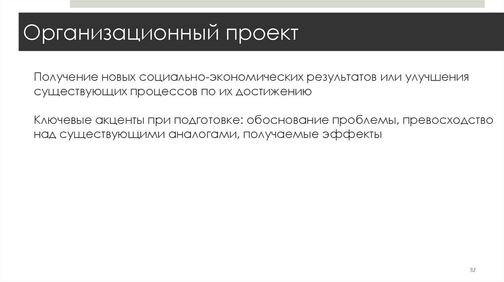 Организационный проектПолучение новых социально-экономических результатов или улучшения