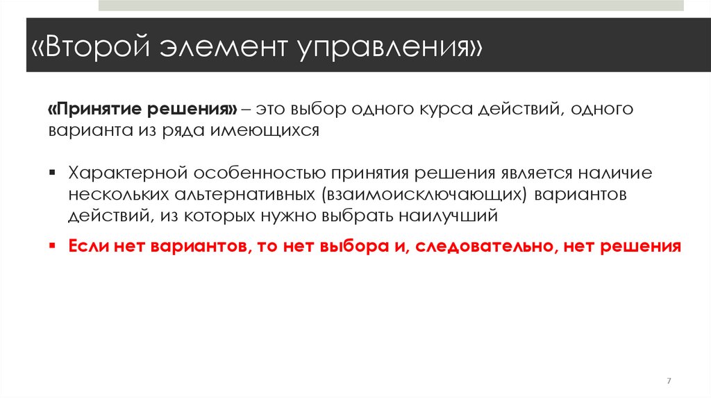 «Второй элемент управления»«Принятие решения» – это выбор одного курса действий, одного