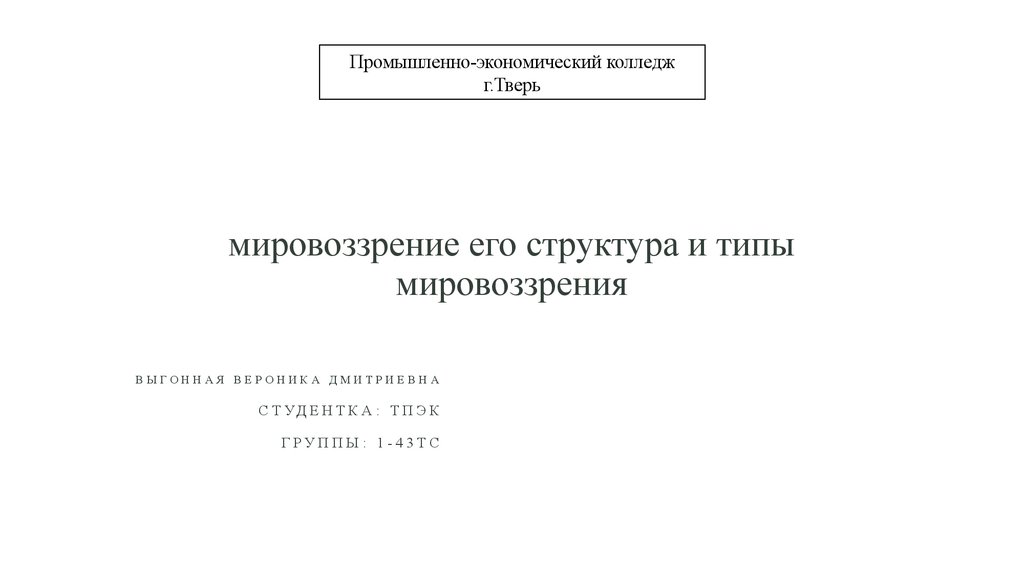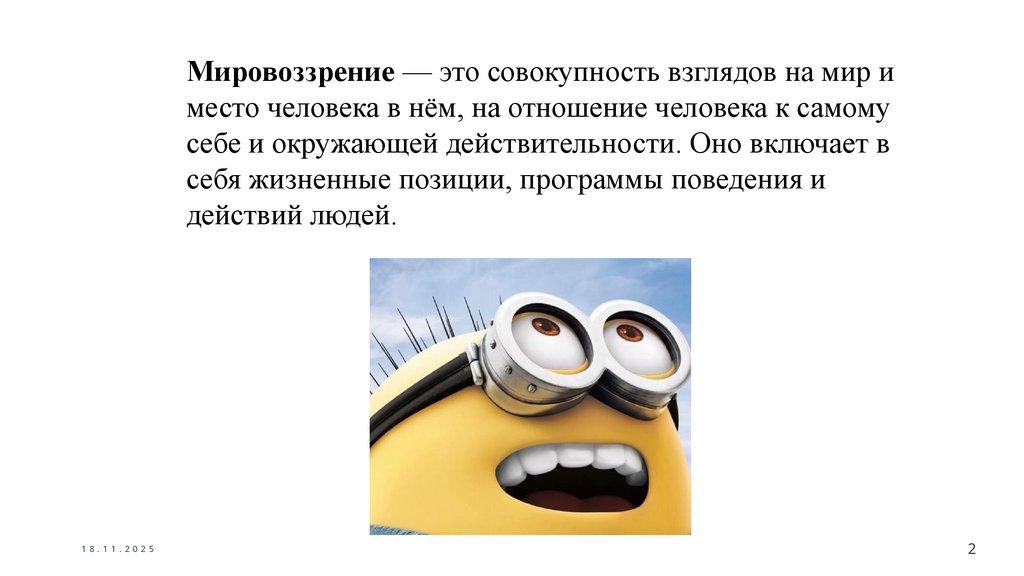 Мировоззрение — это совокупность взглядов на мир иместо человека в нём, на отношение человека к самому