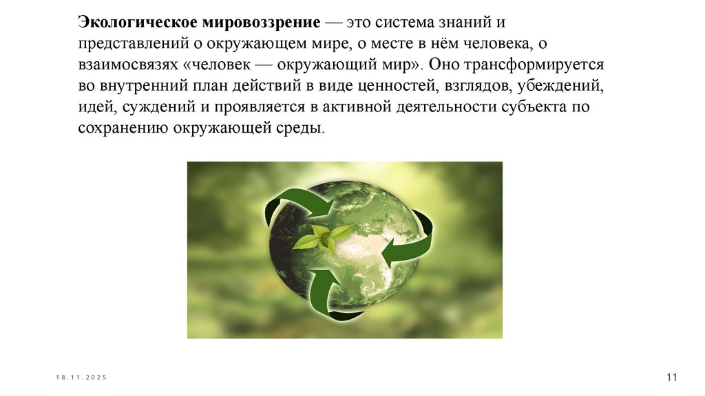 Экологическое мировоззрение — это система знаний ипредставлений о окружающем мире, о месте в нём человека, о