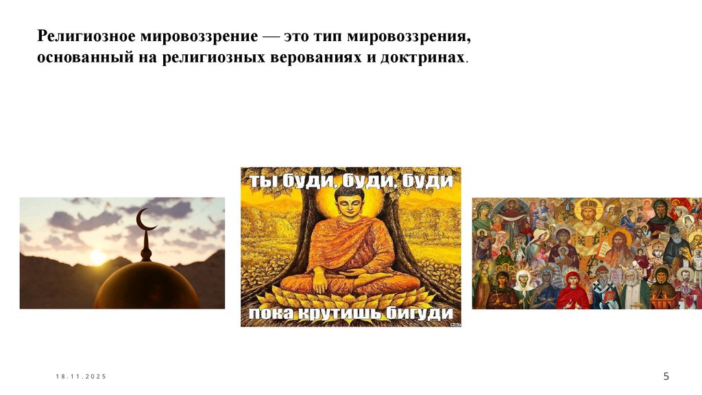 Религиозное мировоззрение — это тип мировоззрения,основанный на религиозных верованиях и доктринах.