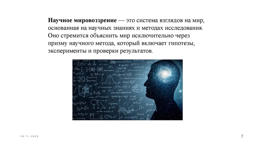Научное мировоззрение — это система взглядов на мир,основанная на научных знаниях и методах исследования.