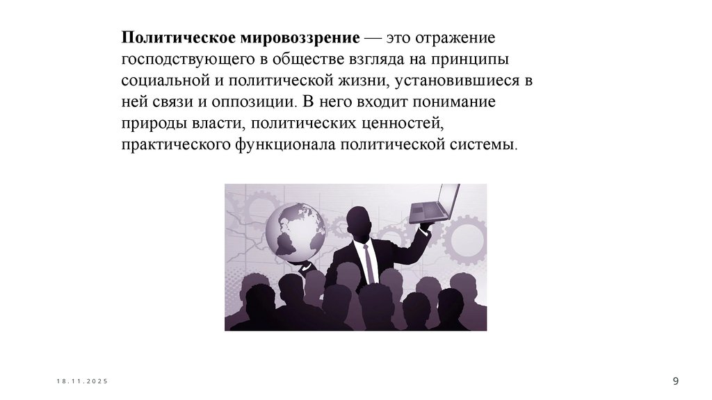 Политическое мировоззрение — это отражениегосподствующего в обществе взгляда на принципы