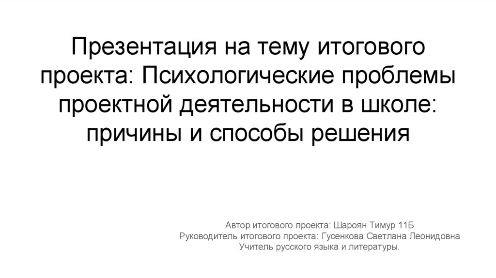 Презентация на тему итоговогопроекта: Психологические проблемы
