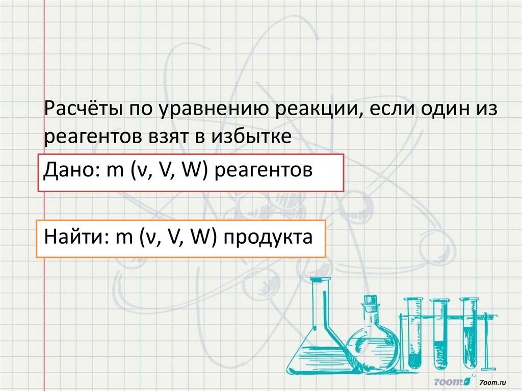 Расчёты по уравнению реакции, если один изреагентов взят в избытке