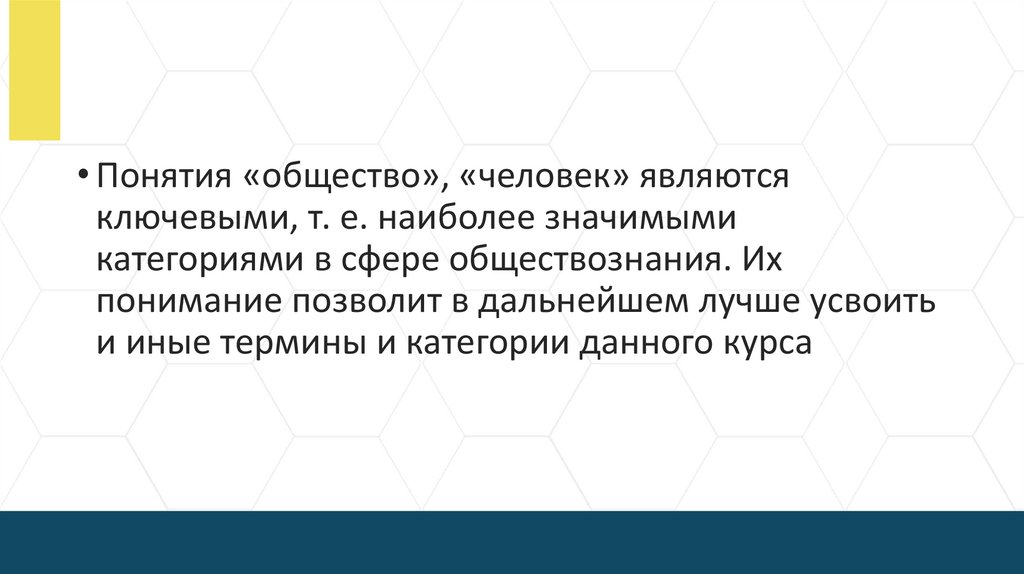 • Понятия «общество», «человек» являютсяключевыми, т. е. наиболее значимыми