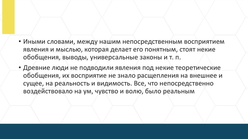 • Иными словами, между нашим непосредственным восприятиемявления и мыслью, которая делает его понятным, стоят некие