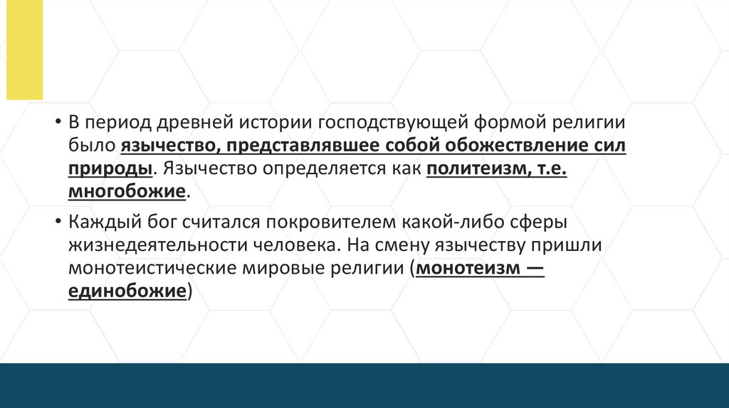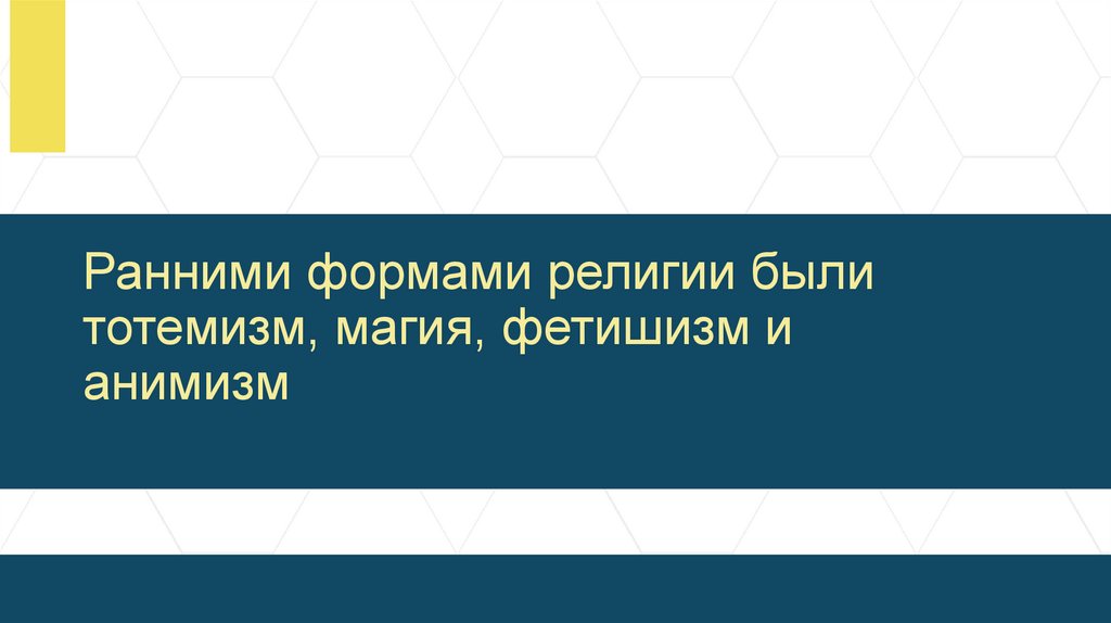 Ранними формами религии былитотемизм, магия, фетишизм и
