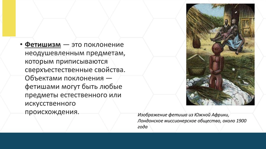 • Фетишизм — это поклонениенеодушевленным предметам,