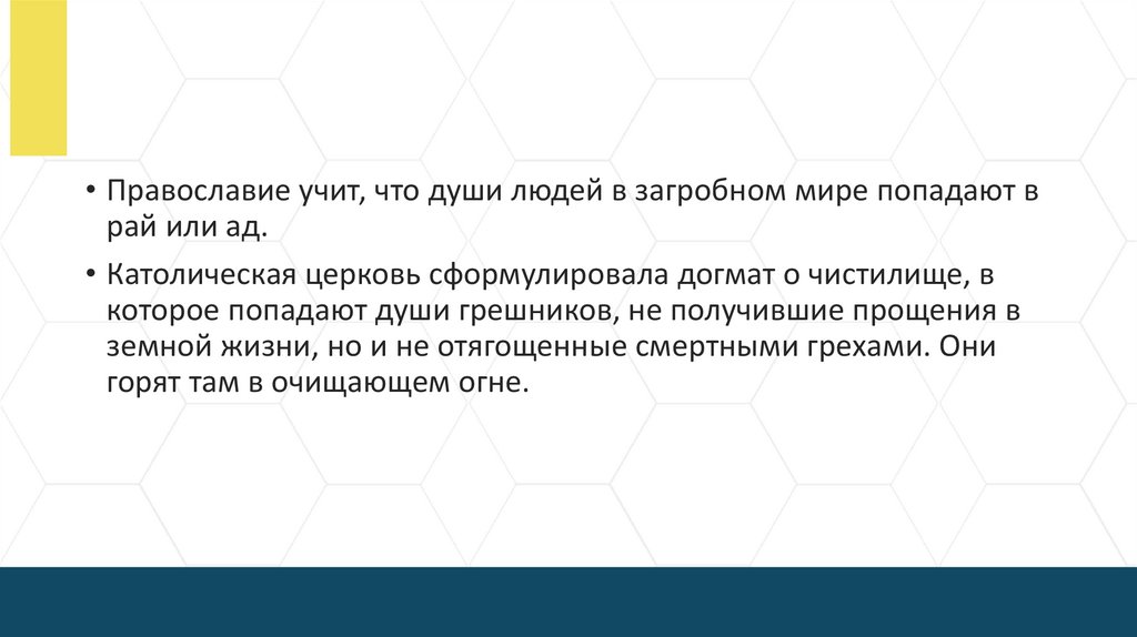 • Православие учит, что души людей в загробном мире попадают врай или ад.