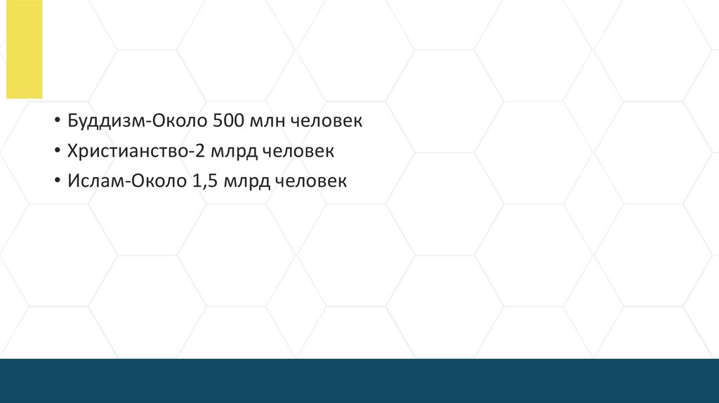• Буддизм-Около 500 млн человек• Христианство-2 млрд человек