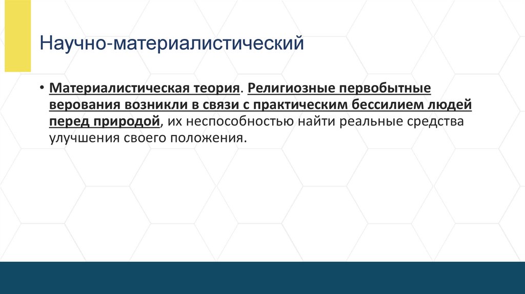 Научно-материалистический• Материалистическая теория. Религиозные первобытные