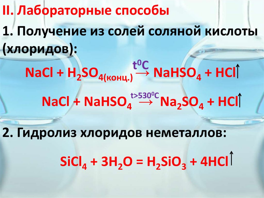 II. Лабораторные способы1. Получение из солей соляной кислоты