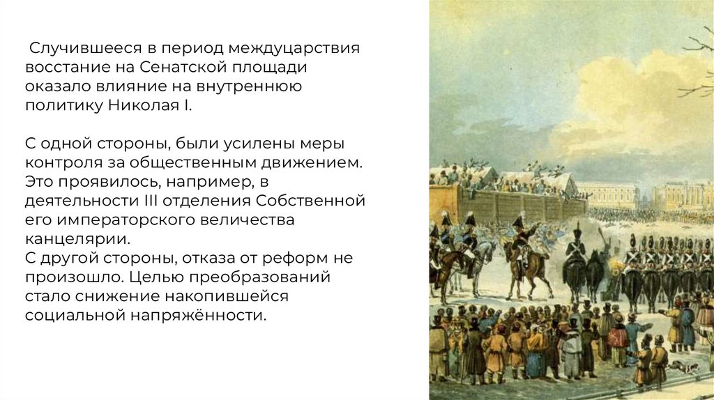 Случившееся в период междуцарствиявосстание на Сенатской площади