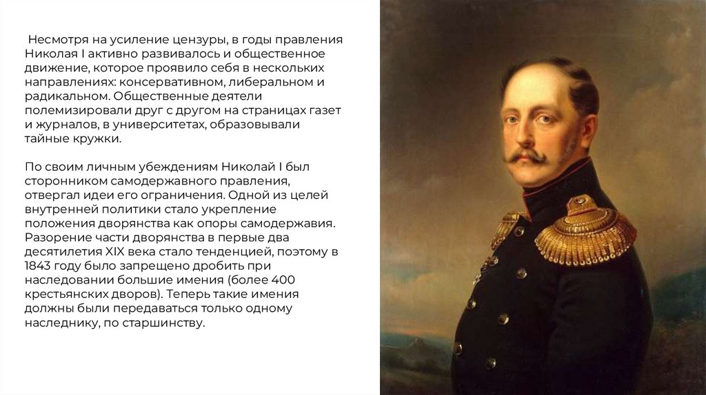 Несмотря на усиление цензуры, в годы правленияНиколая I активно развивалось и общественное