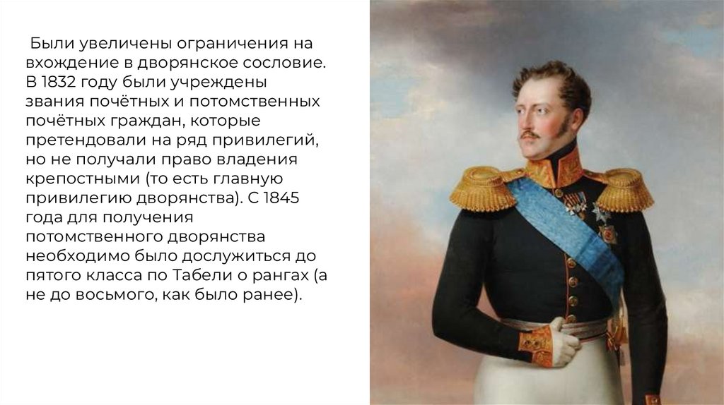 Были увеличены ограничения навхождение в дворянское сословие.