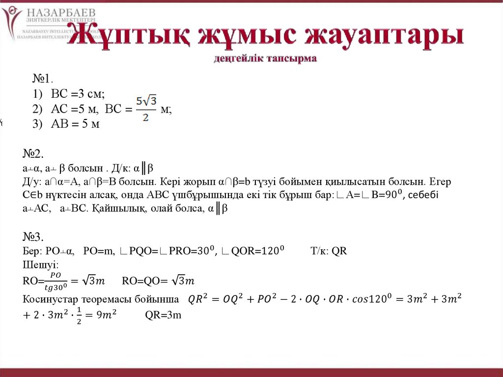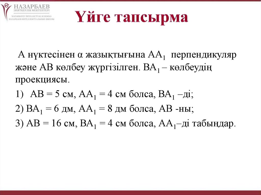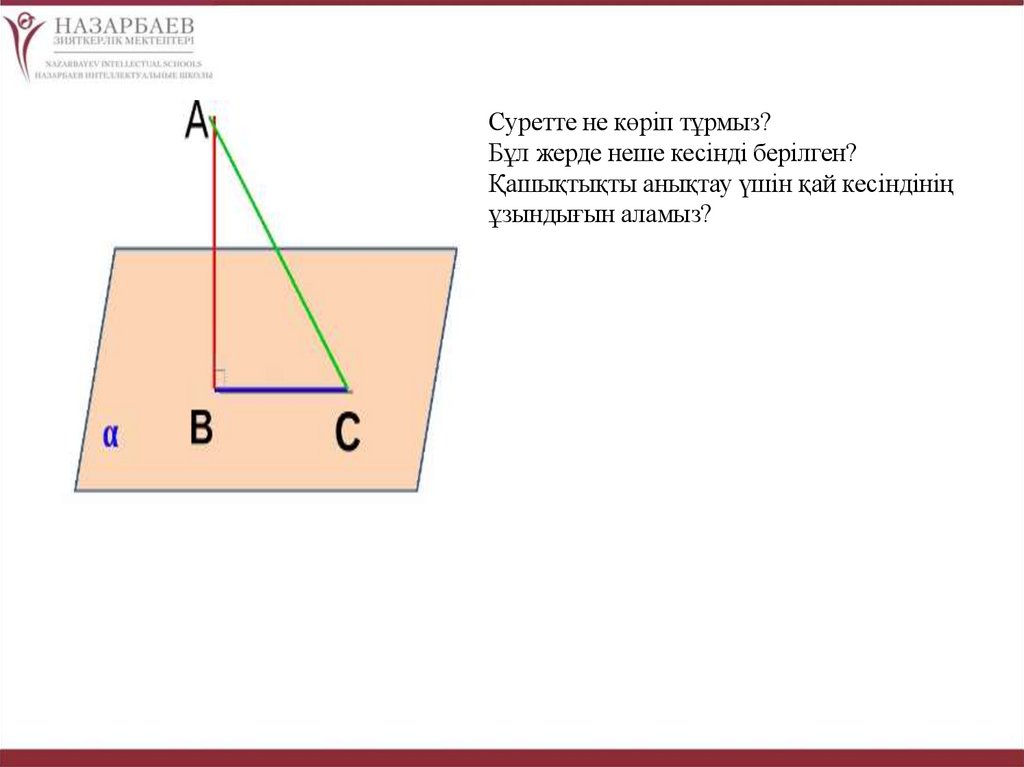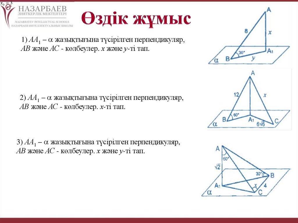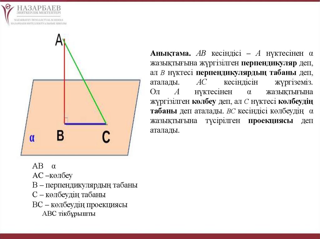 №1.А нүктесінен α жазықтығына АВ перпендикуляр және АС көлбеу