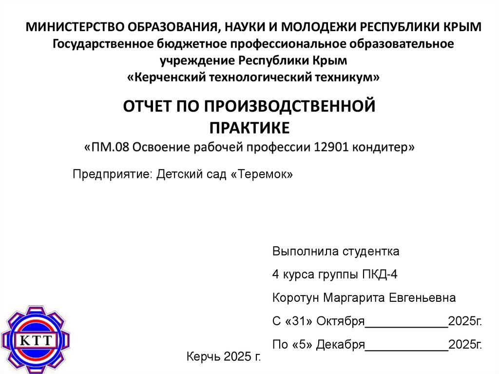 МИНИСТЕРСТВО ОБРАЗОВАНИЯ, НАУКИ И МОЛОДЕЖИ РЕСПУБЛИКИ КРЫМГосударственное бюджетное профессиональное образовательное