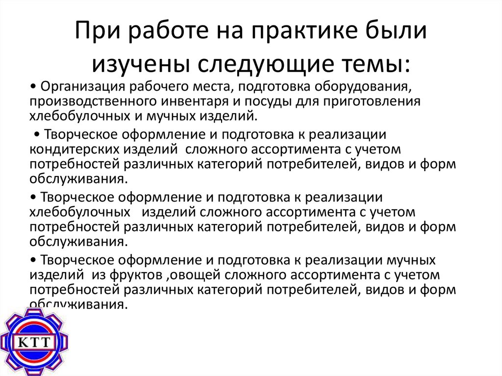 При работе на практике былиизучены следующие темы: