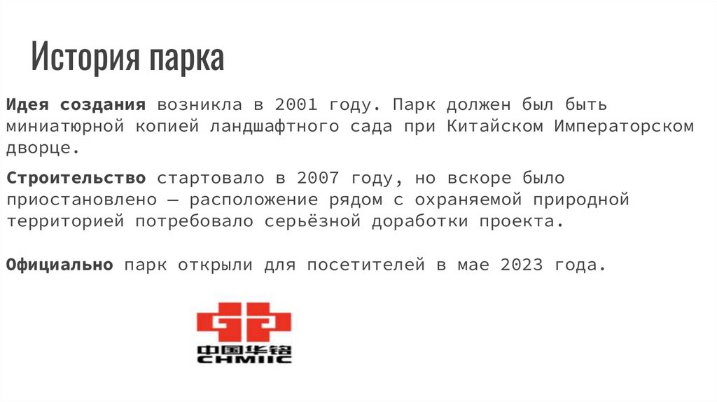 Официально парк открыли для посетителей в мае 2023 года.