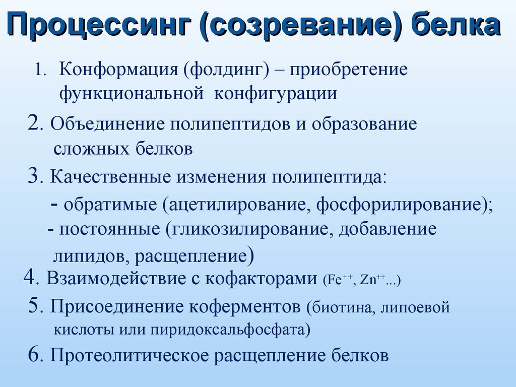 Процессинг (созревание) белка1. Конформация (фолдинг) – приобретение