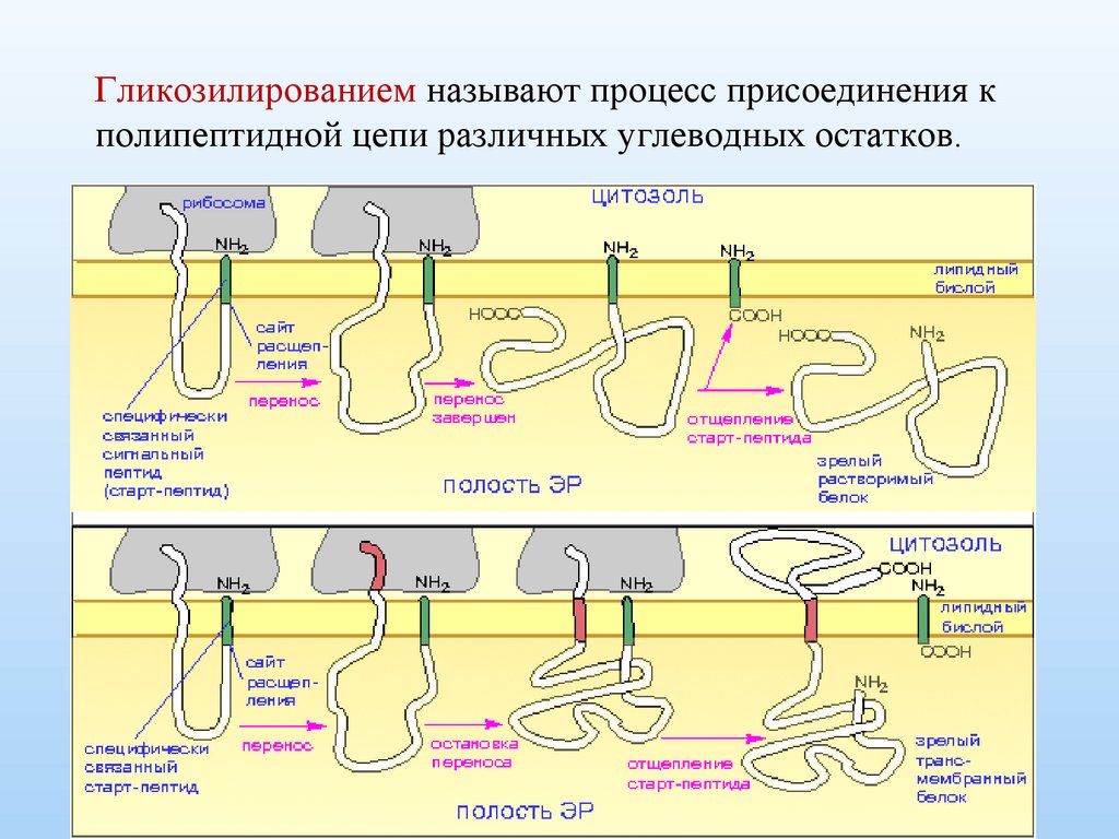 Гликозилированием называют процесс присоединения кполипептидной цепи различных углеводных остатков.