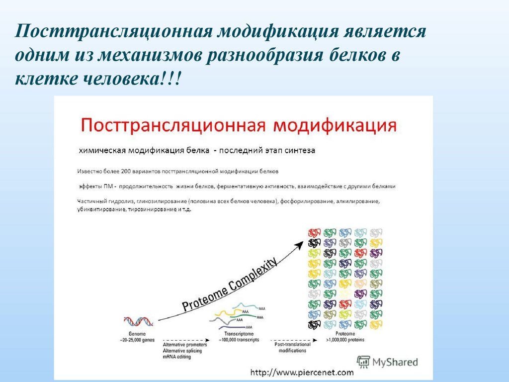 Посттрансляционная модификация являетсяодним из механизмов разнообразия белков в
