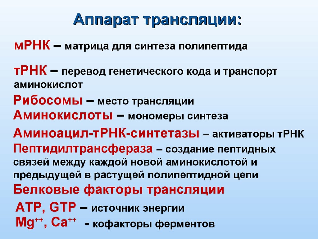 Аппарат трансляции:мРНК – матрица для синтеза полипептида