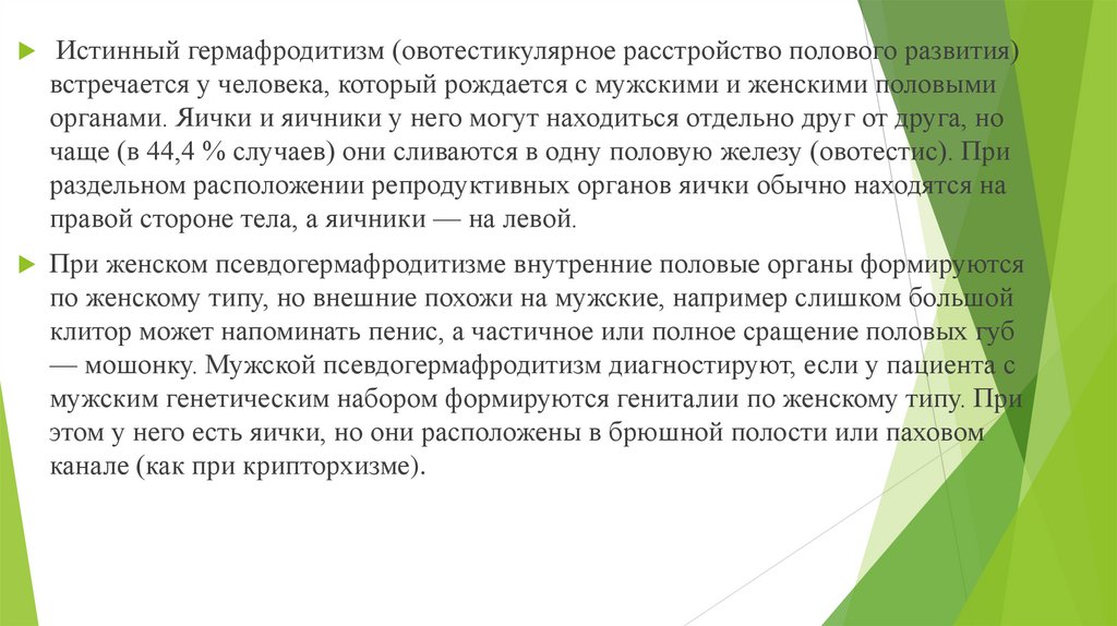 Стоит отметить, что термин «гермафродитизм» устарел и воспринимается некоторыми