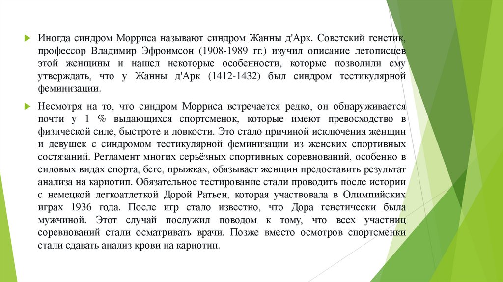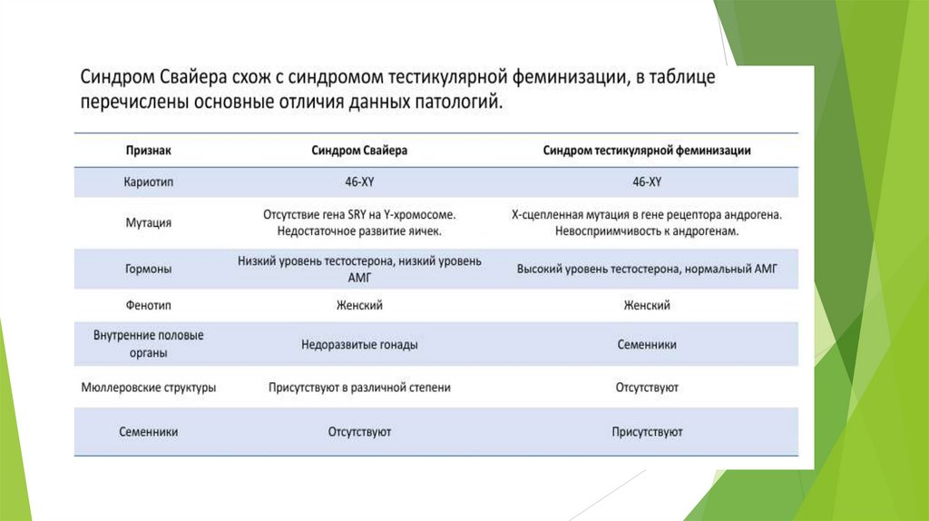 человек с мужским геном выглядит как женщина); дефицита ферментов, влияющих на
