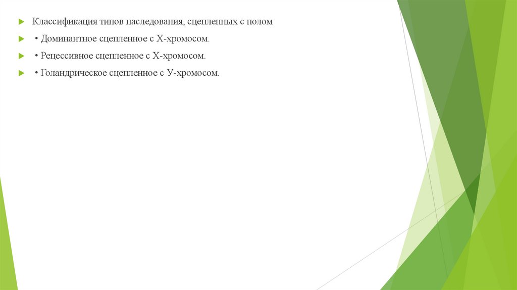 Классификация типов наследования, сцепленных с полом• Доминантное сцепленное с Х-хромосом.