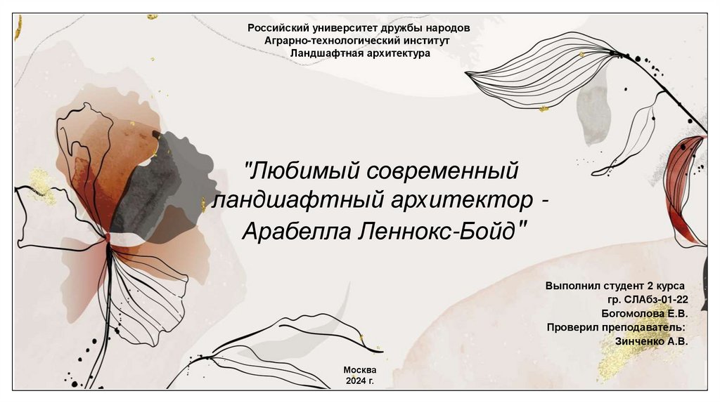 2. Содержание презентации : - Краткая биография; - Описание дома Арабеллы; - Примеры ландшафтных проектов; - Рассуждение о