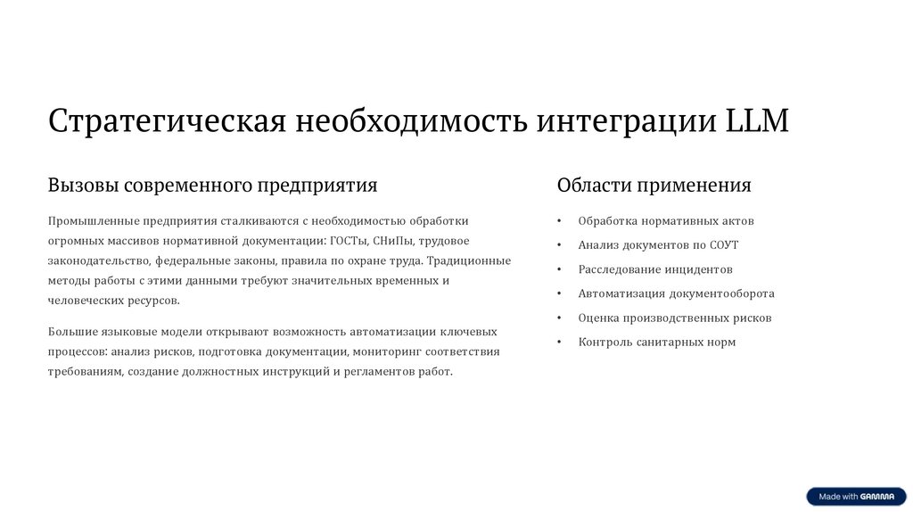 Интеграция инструментов LLM в систему охраны труда - это не просто технологическая инновация, а стратегическое преимущество,