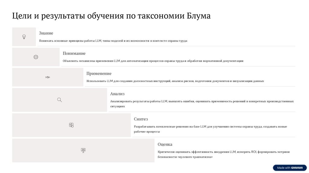 Понимать основные принципы работы LLM, типы моделей и их возможности в контексте охраны труда