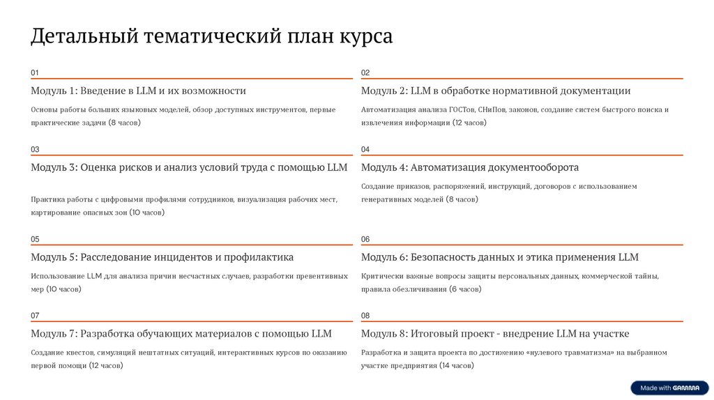 Разрабатывать комплексные решения на базе LLM для улучшения системы охраны труда, создавать новые