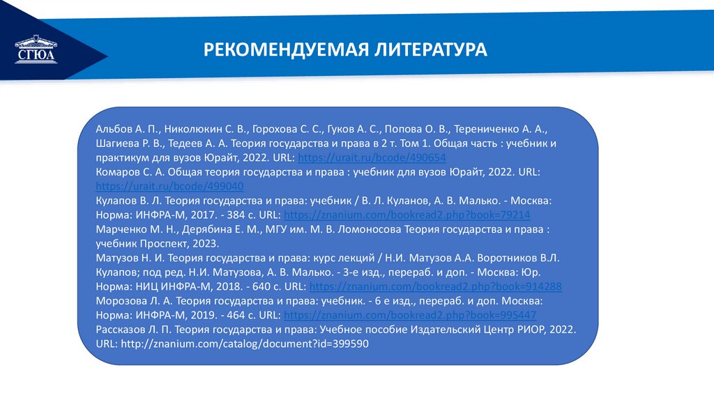 Комаров С. А. Общая теория государства и права : учебник для вузов Юрайт, 2022. URL: