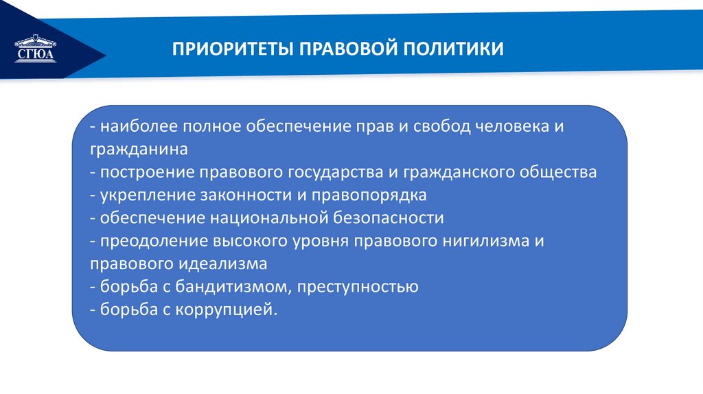 РЕМОНТПРИОРИТЕТЫ ПРАВОВОЙ ПОЛИТИКИ
