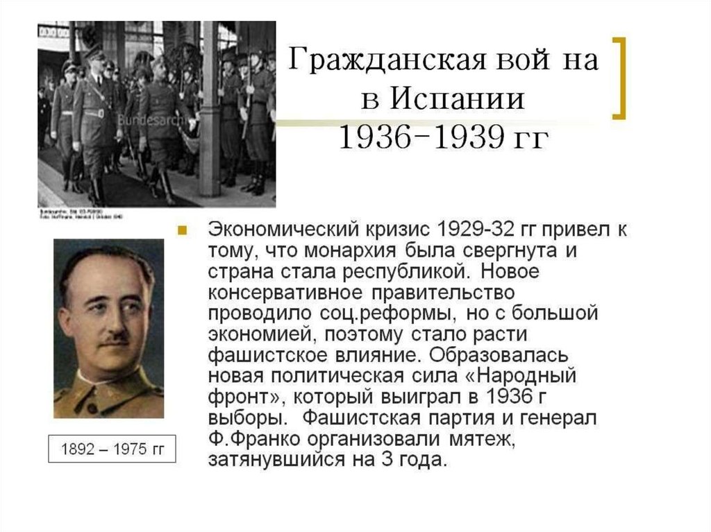 8. 2. Рост национализма в Европе и мире. Гражданская война в Испании.