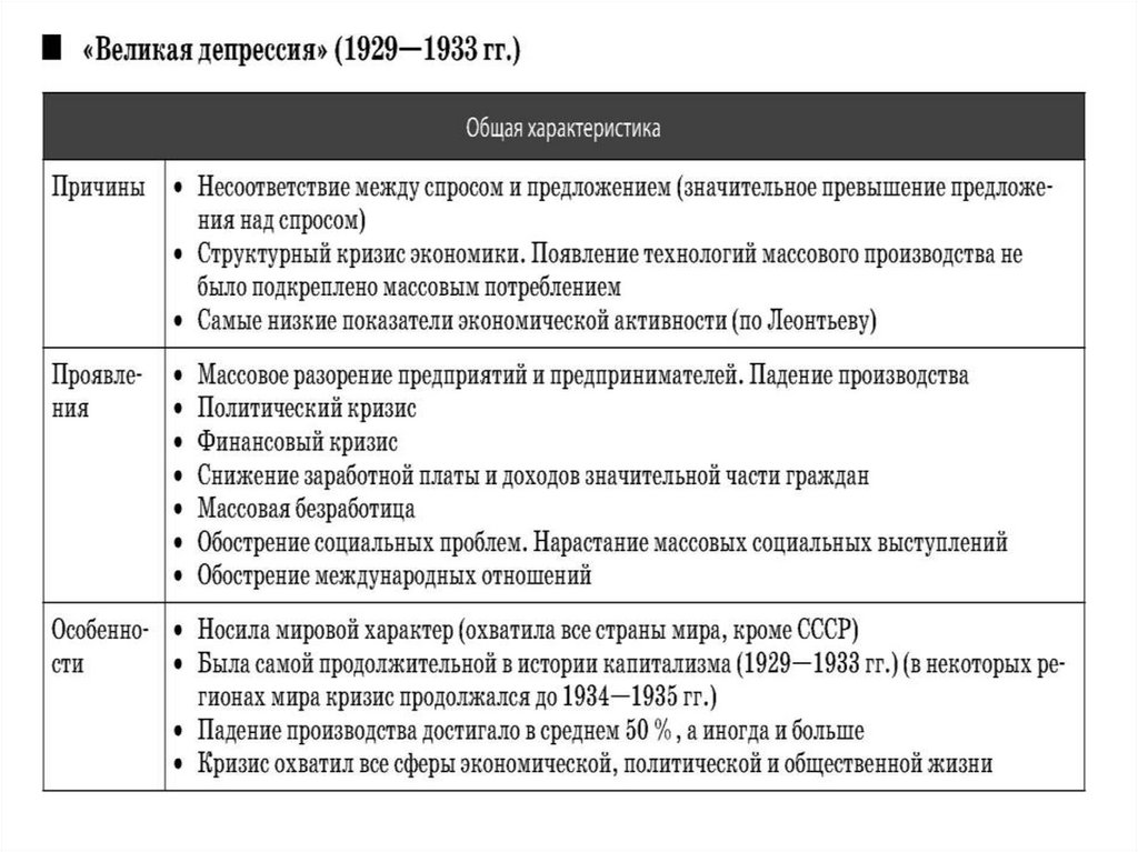 Учебные вопросы:1. «Великая депрессия» в мире.