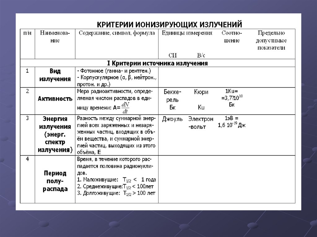 7. ПАРАМЕТРЫ ИОНИЗИРУЩЕГО ИЗЛУЧЕНИЯ