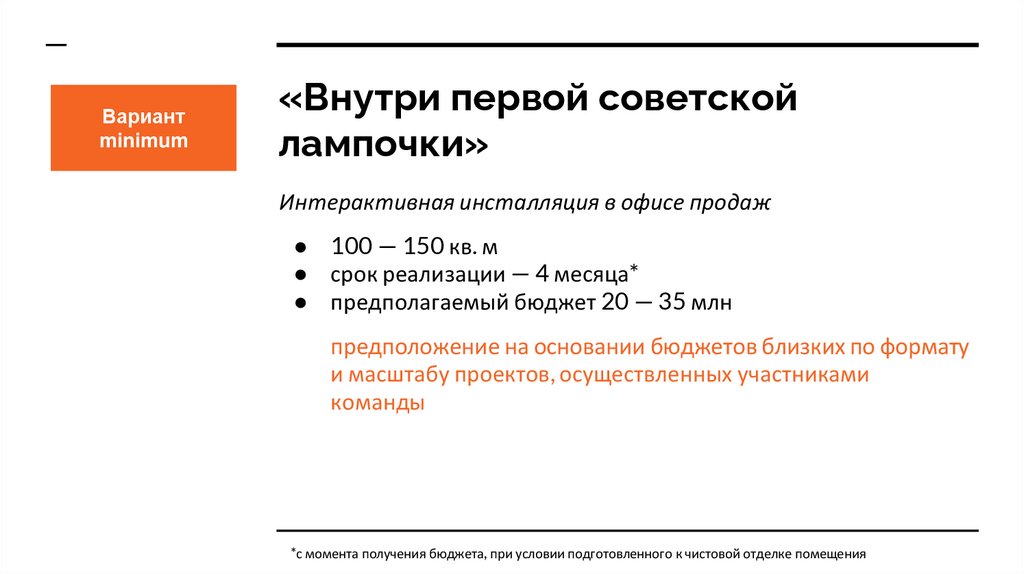 *с момента получения бюджета, при условии подготовленного к чистовой отделке помещения