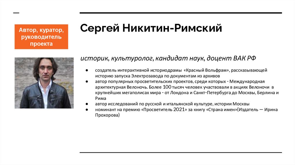 создатель интерактивной историодрамы «Красный Вольфрам», рассказывающей