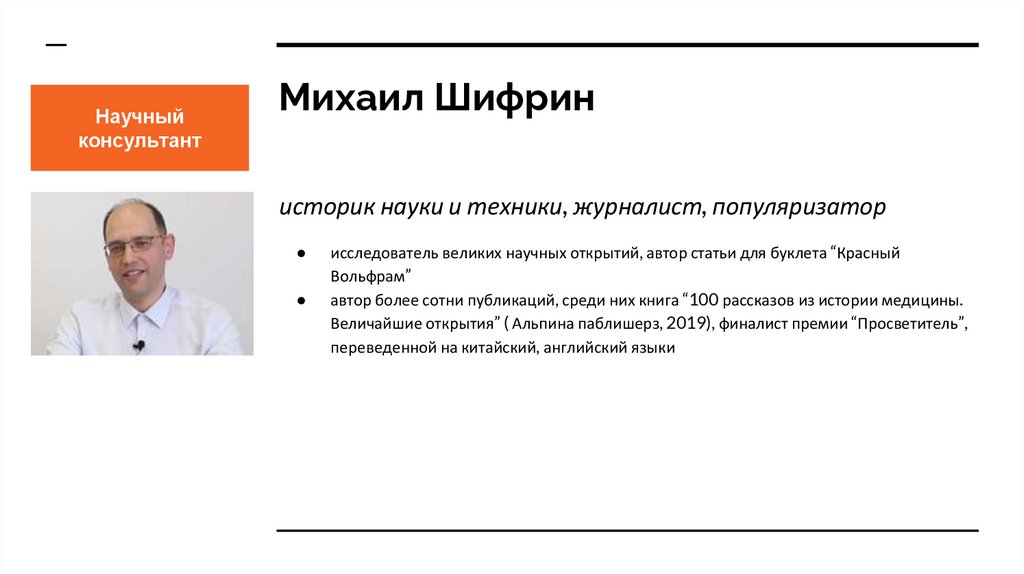 исследователь великих научных открытий, автор статьи для буклета “Красный