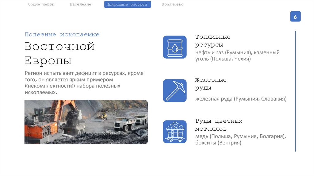 (Польша, Чехия), нефть и газ (Румыния), железная